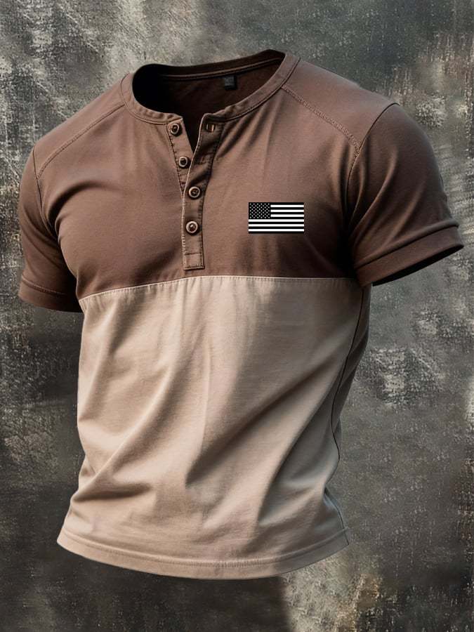 Men's Retro Patriot Patchwork Waffle T-shirt