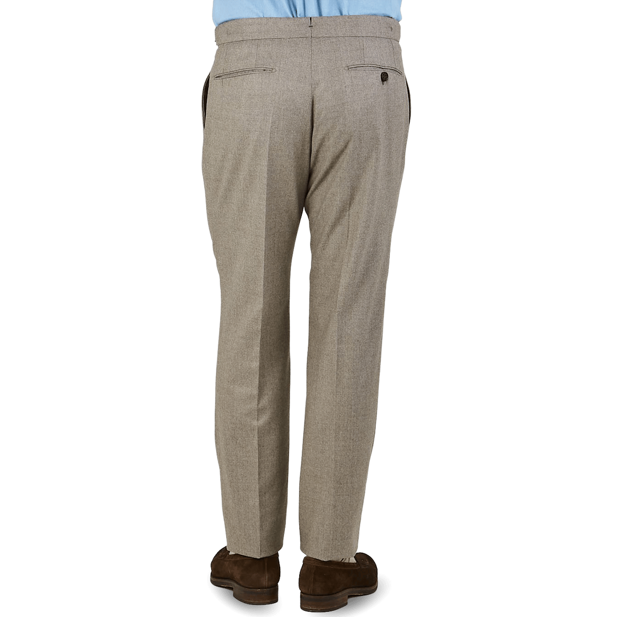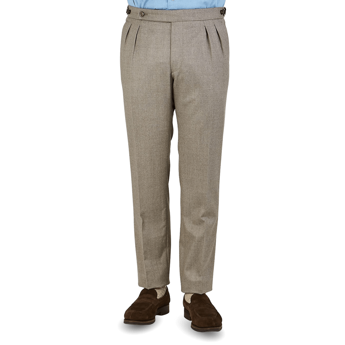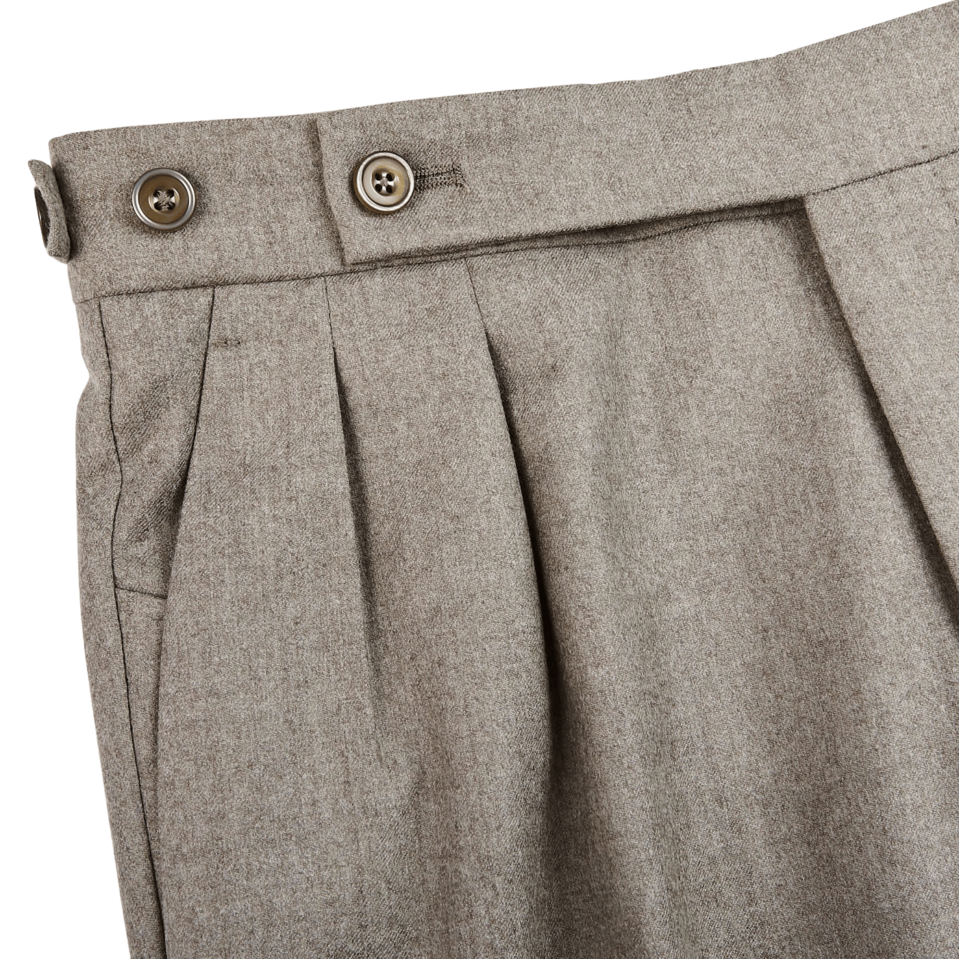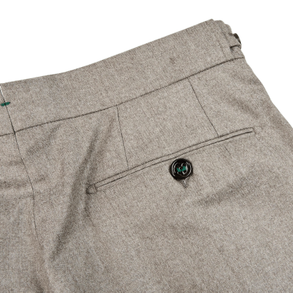 Oatmeal Beige Wool Flannel Pleated Trousers