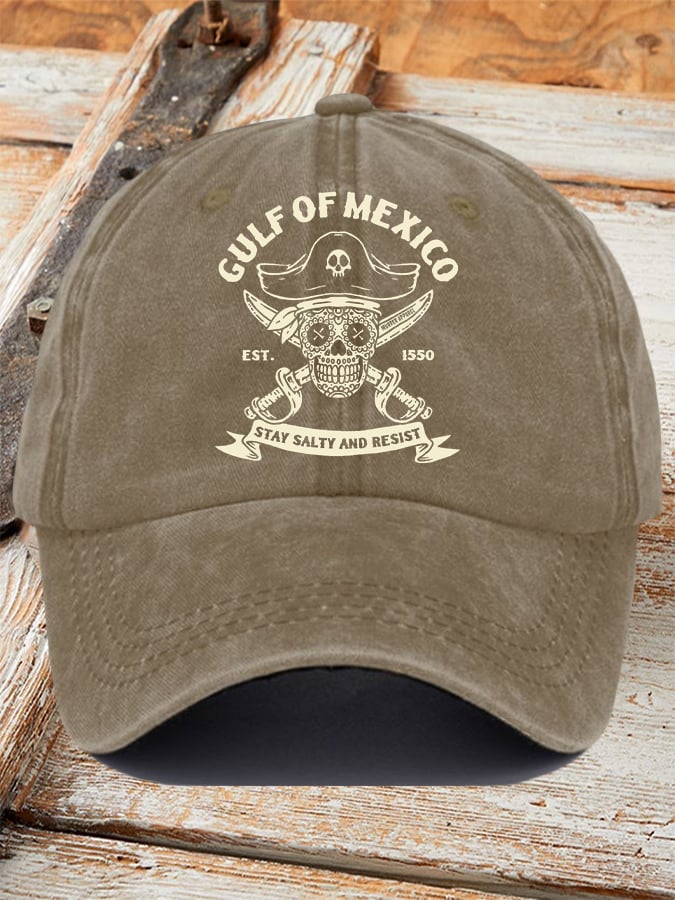 Retro Gulf Of Mexico Est 1550 Stay Salty And Resist Printed Baseball Cap