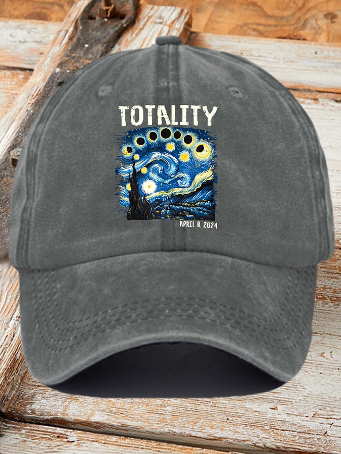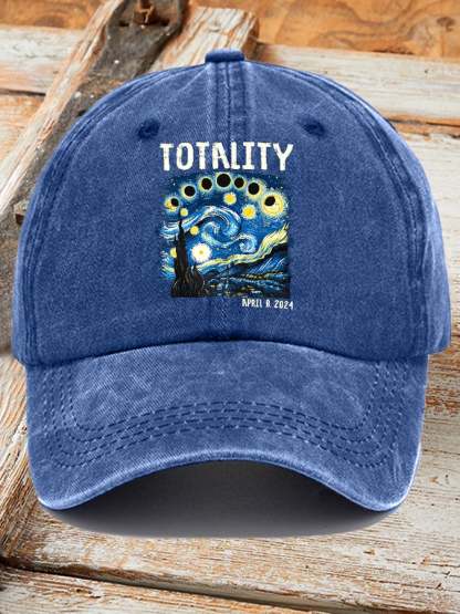Retro Starry Night & Totality Solar Eclipse Of April 8, 2024 Print Baseball Cap