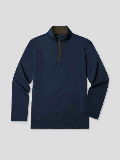 SmoothBlend Classic Fit Half Zip Mock Neck Tee:Zip Contrast Color