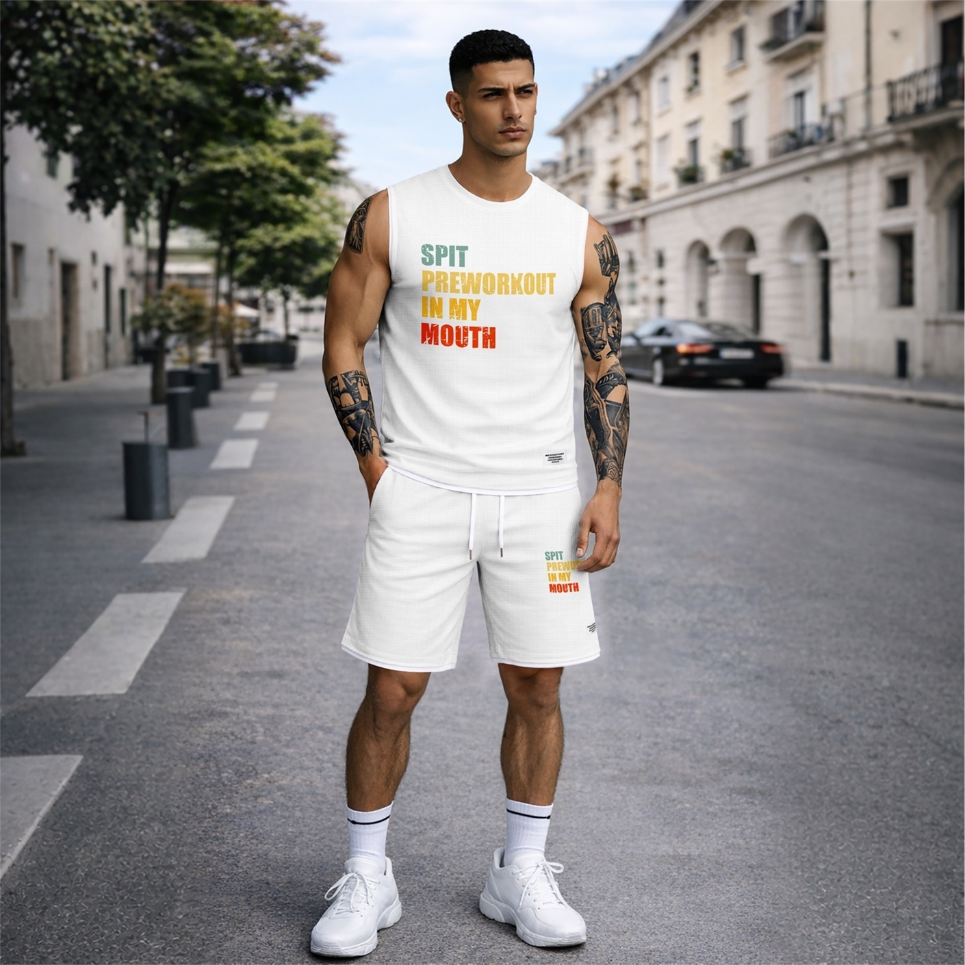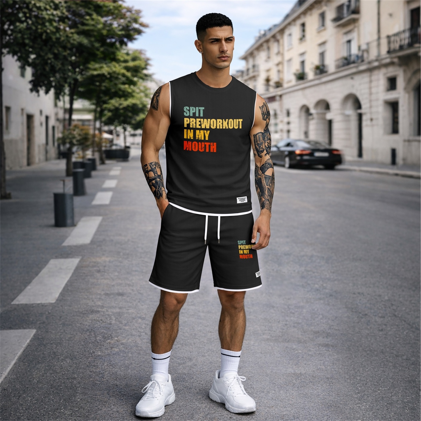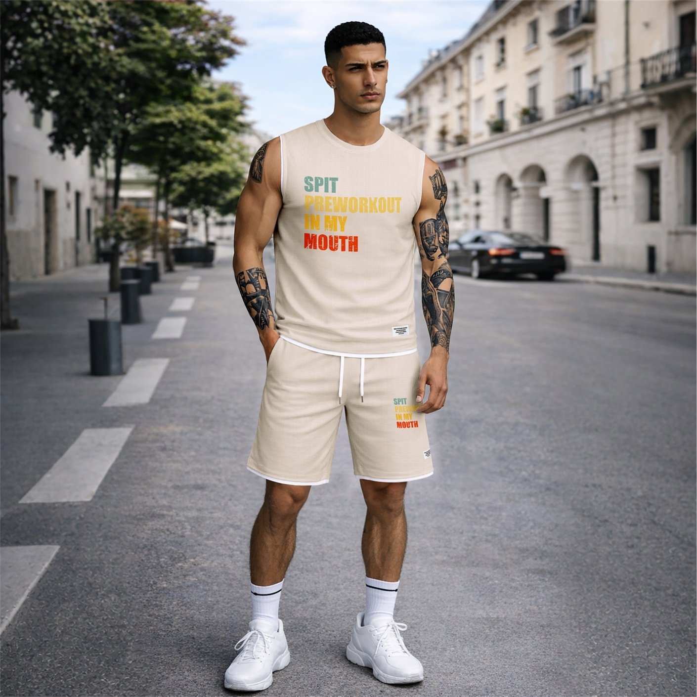 Two Piece Set for Men Graphic Sleeveless Tank Top and Shorts, Casual Summer Matching Outfit, Regular Fit Athletic Streetwear Clothes, Lightweight Breathable Set for Travel Workout Lounge